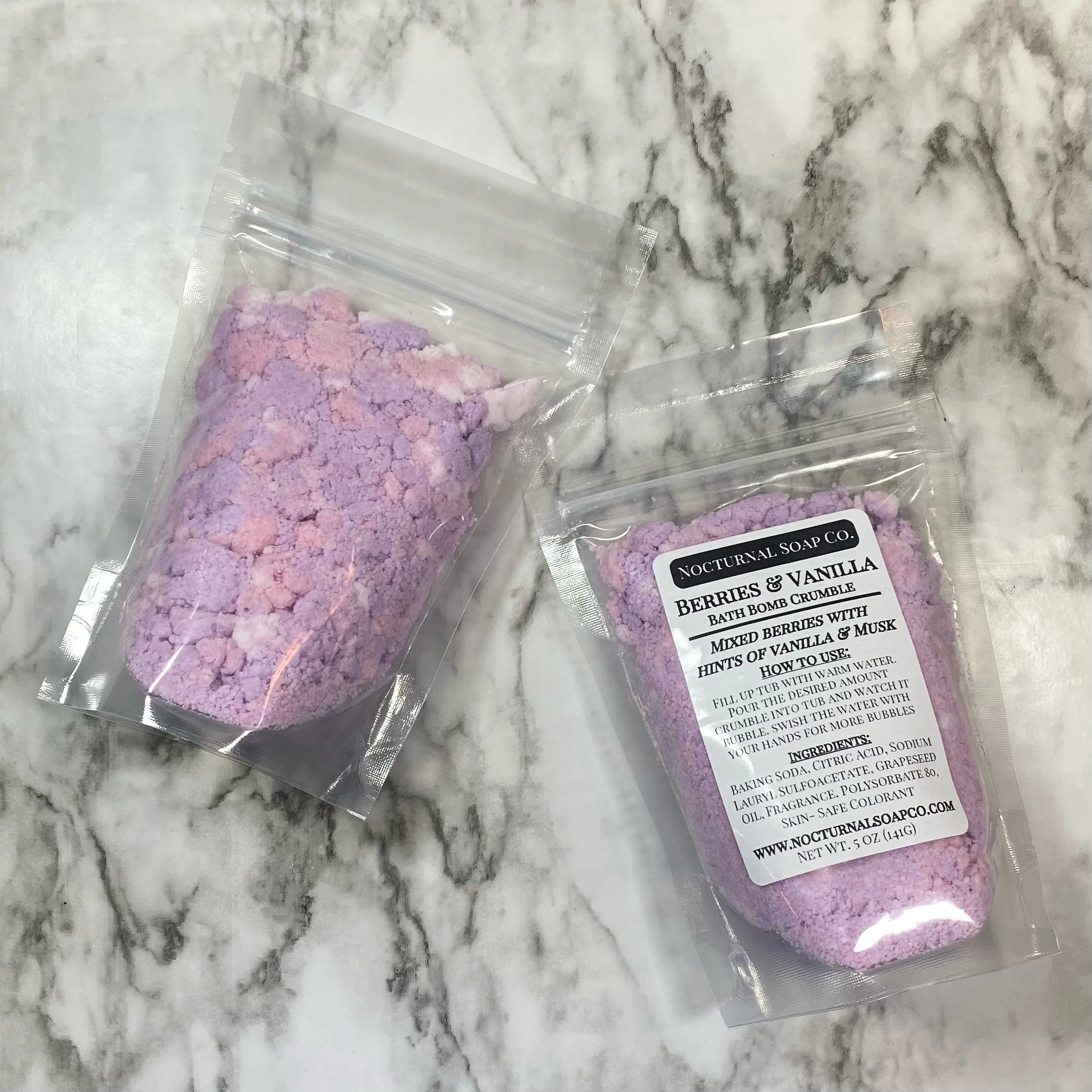 Fill up tub with warm water. Pour the desired amount of Bath Bomb Crumble into tub and watch it fizzle and bubble. For more bubbles, swish and agitate the water with your hands. Surfaces may be slippery, so exit with care.